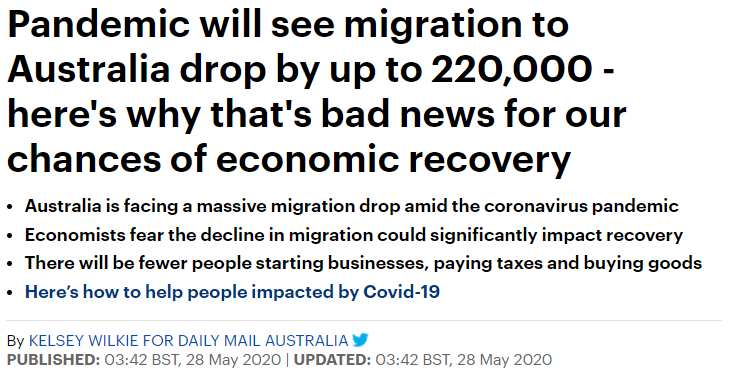 為了遏制COVID-19的傳播,澳洲邊境預計至少在未來6個月內仍處于關閉狀態,經濟學家擔心可能沒有足夠的人口來保持經濟以疫情前的速度發展。