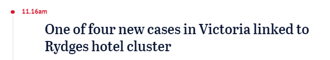 在這些新增病例中,其中有1例與之前集中爆發(fā)疫情的Rydges酒店有關(guān),是一名酒店員工的密切接觸者。