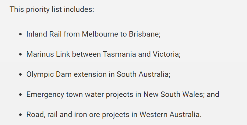 作為一攬子計(jì)劃的一部分,10億澳元將分配給已經(jīng)獲得批準(zhǔn)開始的較小優(yōu)先項(xiàng)目。
