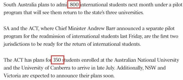 隨后,堪培拉政府也宣布將在7月下旬允許350名外國學(xué)生飛往堪培拉,并在酒店隔離,以振興澳大利亞的國際教育部門。