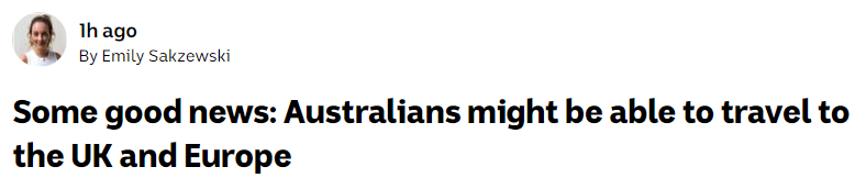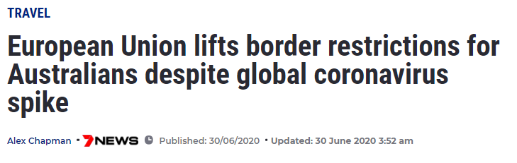 但實(shí)際上,即便歐盟和英國對澳洲開放了邊境,甚至是免隔離的。澳洲人都不一定想出國就能出國的。