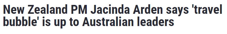 “最終要由澳洲來決定他們是采取全國范圍的方式,還是各州單獨(dú)的方式。很明顯,澳洲有社區(qū)疫情的地方,新西蘭是不能去的。