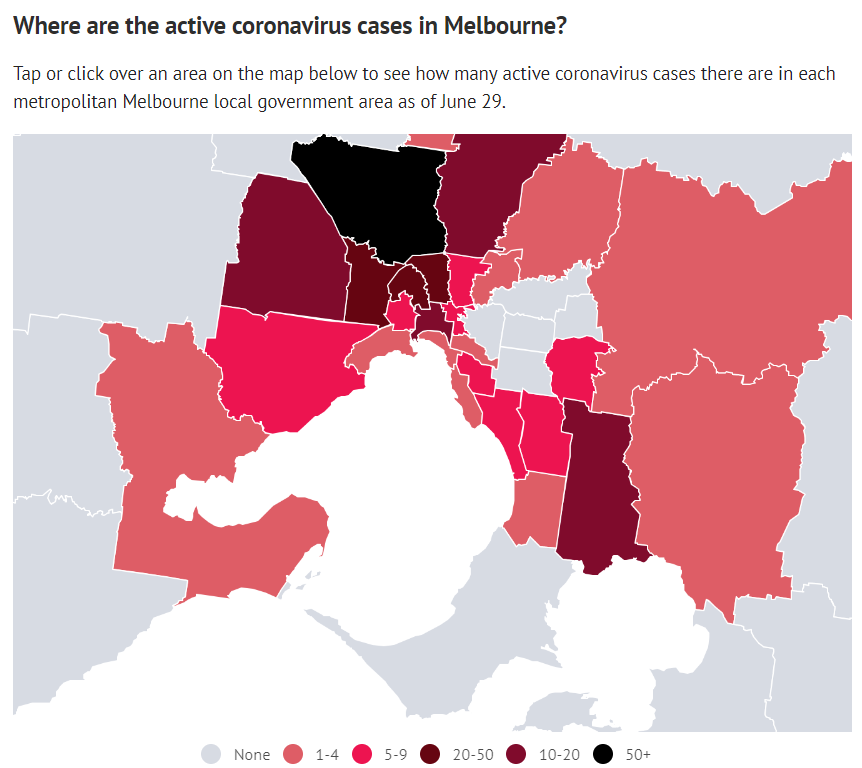 但墨爾本熱點(diǎn)地區(qū)有哪些呢?根據(jù)官方數(shù)據(jù)顯示,給出了墨爾本的熱點(diǎn)地區(qū)地圖,顏色越深的地區(qū),病毒越活躍。