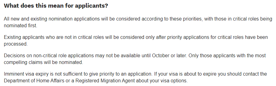 對于已經提交的申請(2020年8月25日下午1點之前),只有等符合關鍵職位的申請審理完后才會被審理;