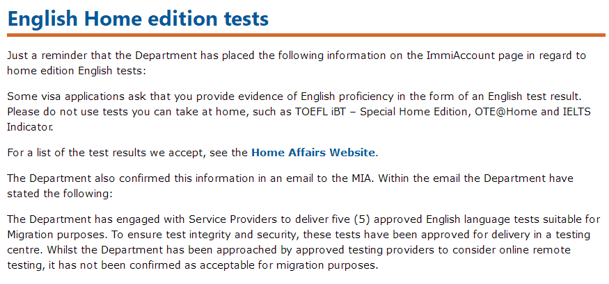 移民局提醒:TOEFL iBT家庭版,OTE家庭版和雅思indicator仍是不接受的語言形式。