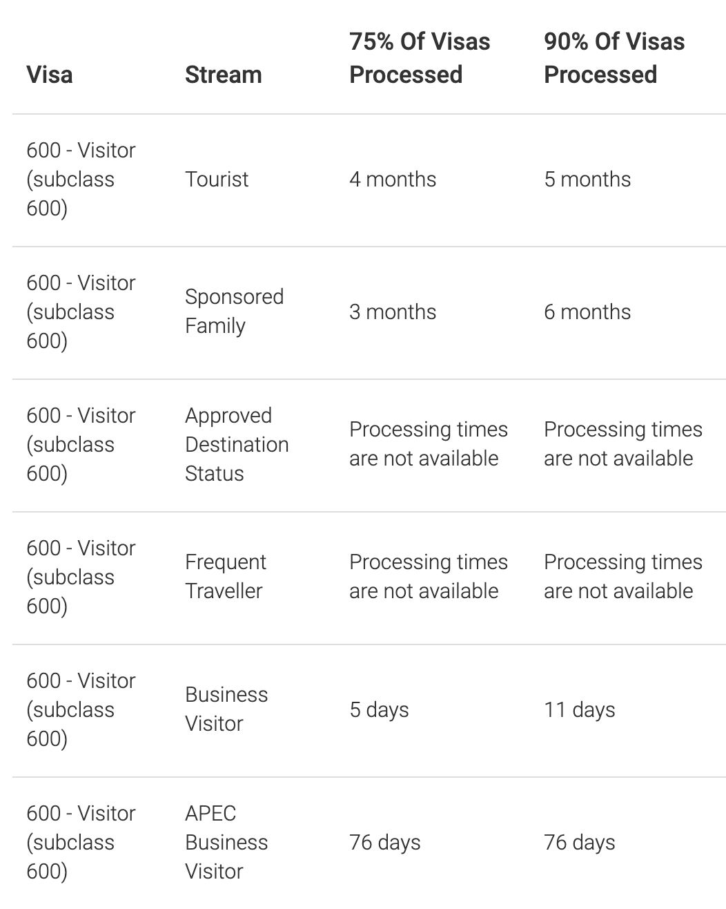 600系列旅游簽下簽速度減緩,由最新數(shù)據(jù)來看:75%的普通600旅游簽證申請(qǐng)將在4個(gè)月內(nèi)獲得審批,90%的申請(qǐng)需要5個(gè)月的時(shí)間。具體取決于特定峰值處理時(shí)間等因素。