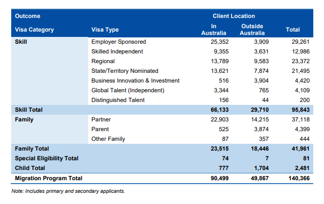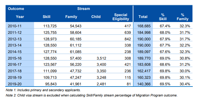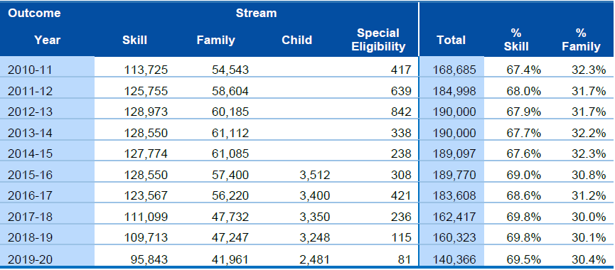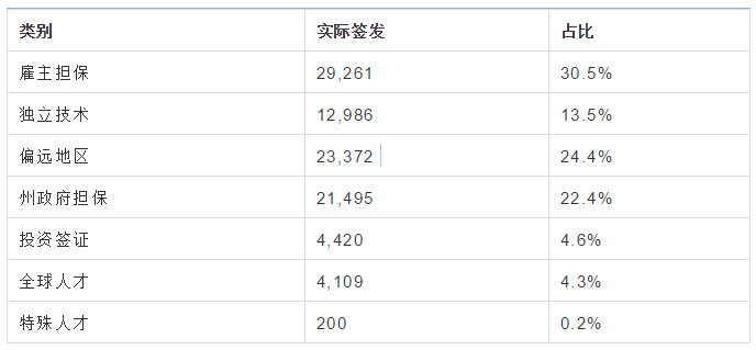 70%的簽證是通過技術類別(總共95,843個)發放的,其中包括2019年11月啟動的“全球高技術人才——獨立計劃”的4,109個名額。