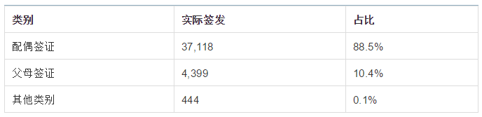 家庭項目共發放41,961個簽證,包括37,118個配偶簽。
