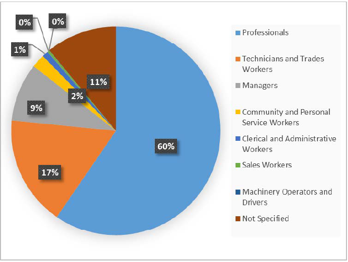 通過這個餅圖可以看出,申請人為專業人才的占了超過一半(60%)。第二大申請人為技術人員及貿易專員。不難看出,通過掌握專業技能來技術移民的移民申請人依舊是主流。澳洲緊缺專業技術型人才,未來技術移民趨勢依舊是這個方向。