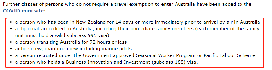 因為新西蘭對于疫情的控制成功,以及澳洲本身的疫情控制等因素影響,最新的移民局更新新增了以下符合條件的人可以免除旅行豁免入境澳洲: