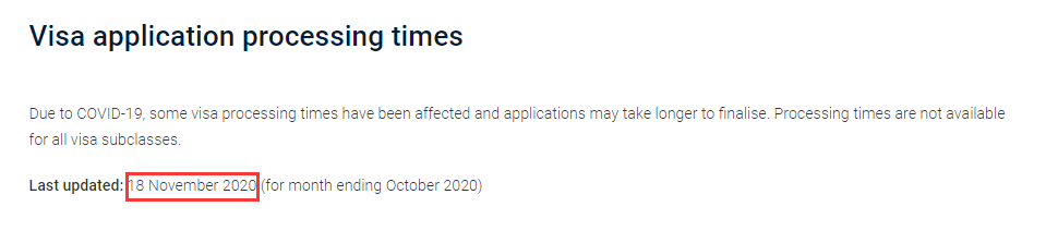 澳洲內(nèi)政部最近更新了截止至2020年10月的各類簽證的最新審理時長情況,因為疫情的原因, 部分簽證審理時間會延長,本次未提供所有簽證的審理時間。