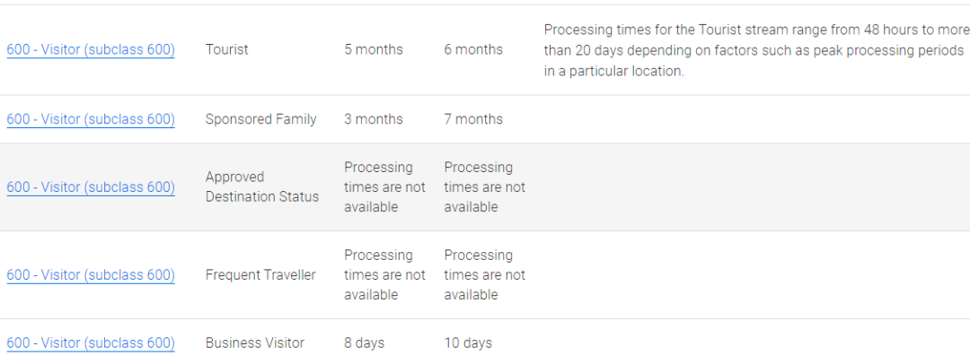600系列旅游簽下簽速度減緩,由最新數(shù)據(jù)來看:75%的普通600旅游簽證申請將在5個月內(nèi)獲得審批,90%的申請需要6個月的時間。具體取決于特定峰值處理時間等因素。