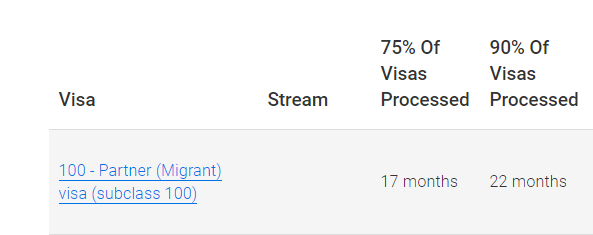 100簽證:75%的申請需17個月,90%的申請需要22個月;快了一個月;