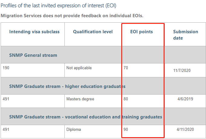 EOI 獲邀分數為70分;提交日期:11/07/2020