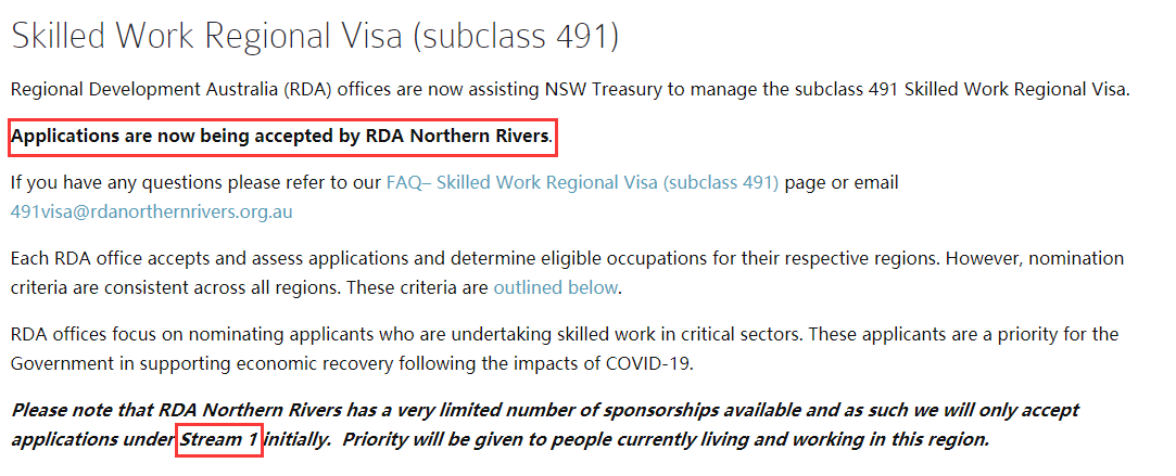 新州Northern Rivers 地區(qū)官網(wǎng)通知491已經(jīng)開放申請,但是也是針對Stream 1,在當(dāng)?shù)鼐幼『凸ぷ鞯纳暾埲恕?/span>