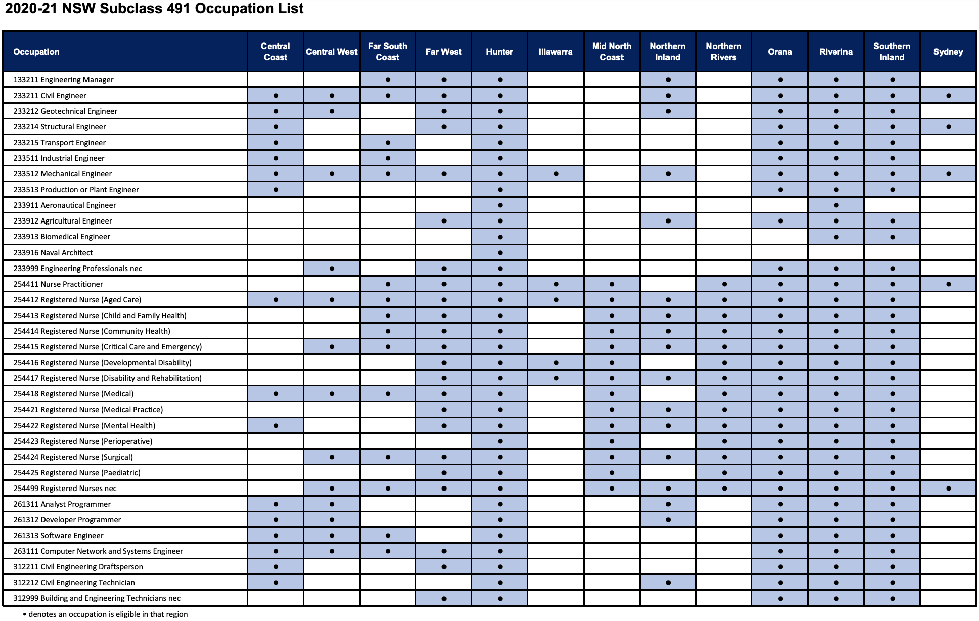 本財年新州491的管理辦法是新州政府制定統(tǒng)一的州擔(dān)政策,各RDA制定各自的職業(yè)清單,并接受和審理提名申請。