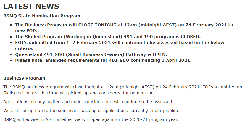 昆州商業(yè)移民已于24日晚12點關閉申請。