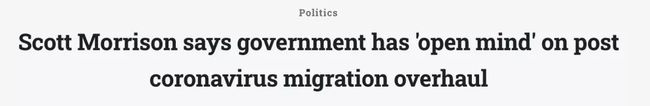 日前,澳洲總理莫里森表示,現(xiàn)在的當(dāng)務(wù)之急就是要重新開始引進(jìn)海外移民。