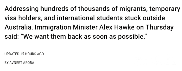 近期,根據澳洲權威媒體SBS報道,澳洲移民部長Alex Hawke致辭時表示,希望盡快接十萬移民、臨時簽證持有人和滯留在澳大利亞境外的國際學生返回澳大利亞。