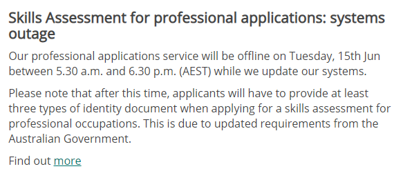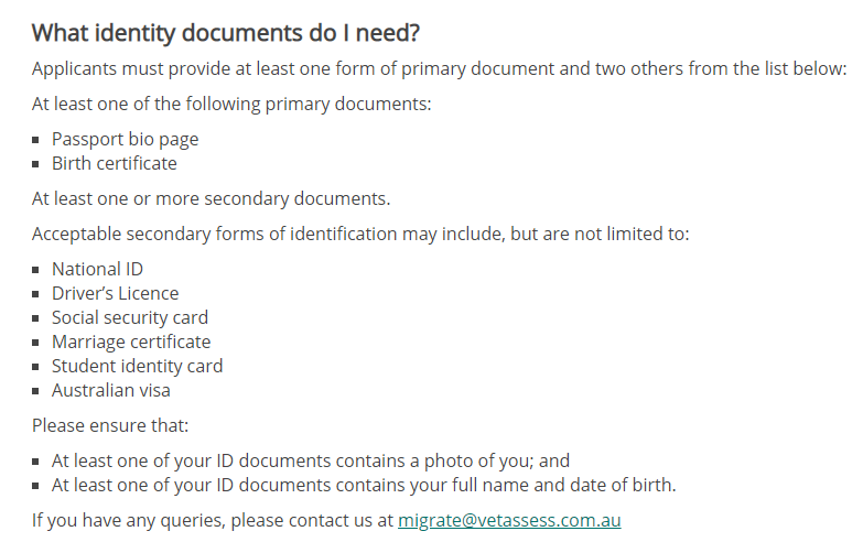 VET評估系統將于6月15日5:30am-6:30pm(AEST)進行下線更新,在此之后,申請人在申請職業評估時必須提供至少三種身份證明文件。