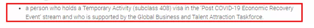 上述408簽證分支適合從境外帶進高級人才,而對于已經在境內的人群來說,408大流行分支則適用于那些由于疫情無法離開澳洲的某些臨簽持有人,包括打工度假簽持有人。