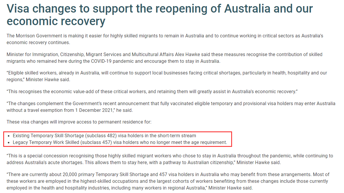 霍克部長說:“目前在海外有大約9,000名臨時技術移民簽證持有人,這些人可以從2021年12月1日起進入澳大利亞,他們也有資格獲得簽證延期。”