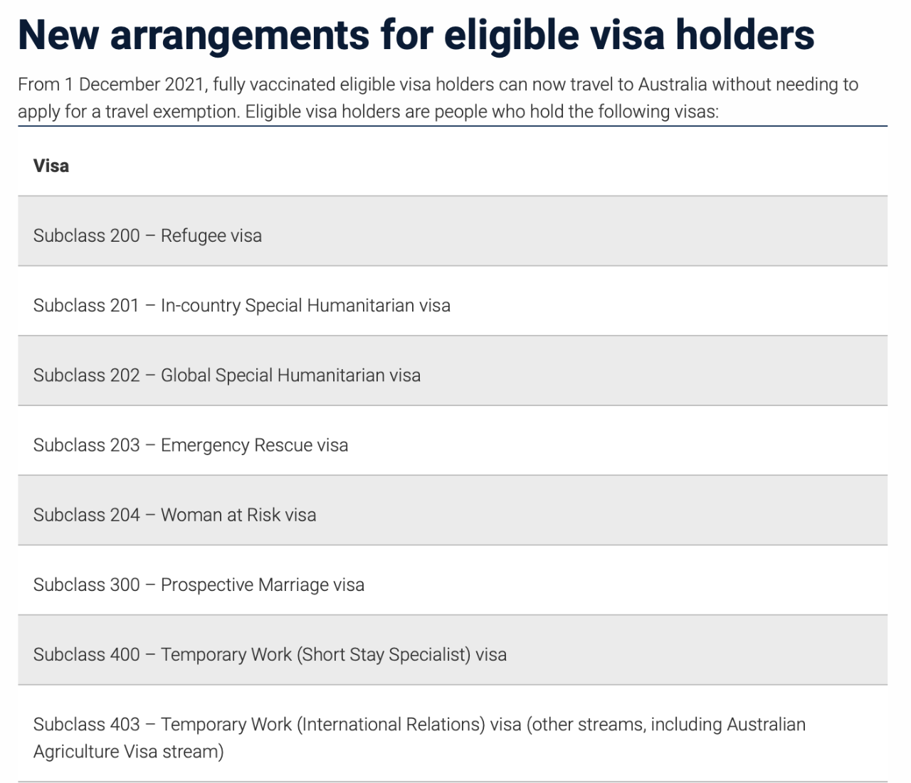 近日,內政部已經公布:從12月1日起,完全接種過疫苗的合格簽證持有者可以不需要額外申請豁免入境澳洲!符合資格的豁免入境簽證類型共有28個,包括:407/457/462/482/489/491/494/500等。