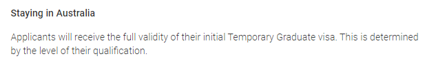 PSW stream 適用于在澳洲完成高等教育的畢業(yè)生,2011年11月5日之后獲得第一個學(xué)生簽證。簽證時長為2至4年。(香港護照持有人可以申請時長為5年的簽證!)