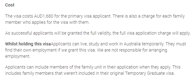 主申的申請費為1680澳幣,和目前的485簽證費一樣,如果加入其他副申請需要額外收費。