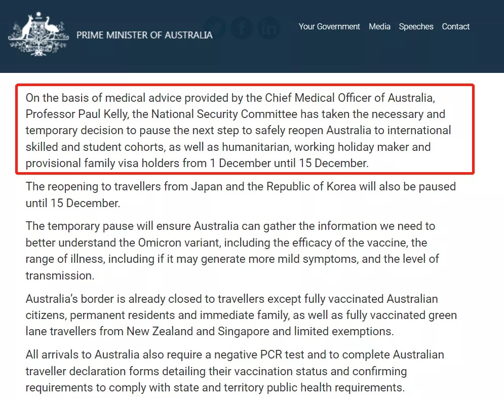 數萬留學生和技術工人等臨時簽證持有人都在急切的等待確認的返澳時間,之前由于擔心Omicron變異病毒傳播,澳洲總理莫里森在Prime minister of Australia官網聲明:澳洲邊境封鎖將延長至12月15日,之后是否會封鎖取決于疫情控制情況決定。
