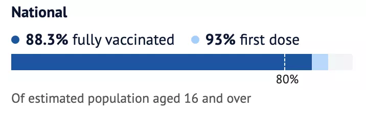 他說:“本周末,全澳的兩劑疫苗接種率將非常接近90%,這對澳人來說是一項非凡的成就。”