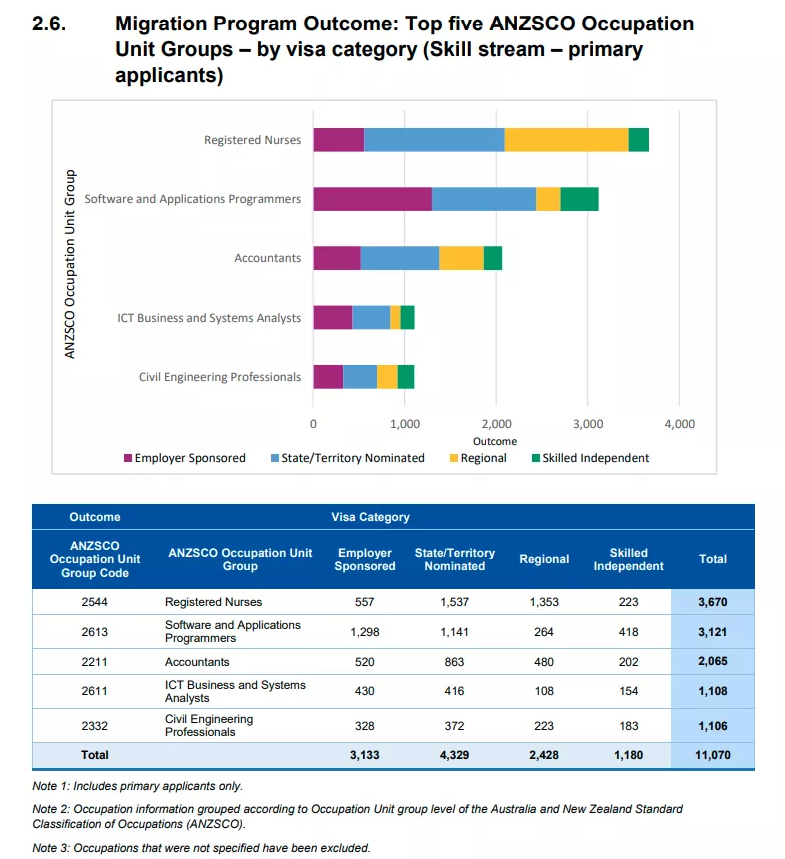 根據(jù)移民局最新發(fā)布的2020-2021財年移民數(shù)據(jù),澳洲最熱門的前5大移民職業(yè)分別是: