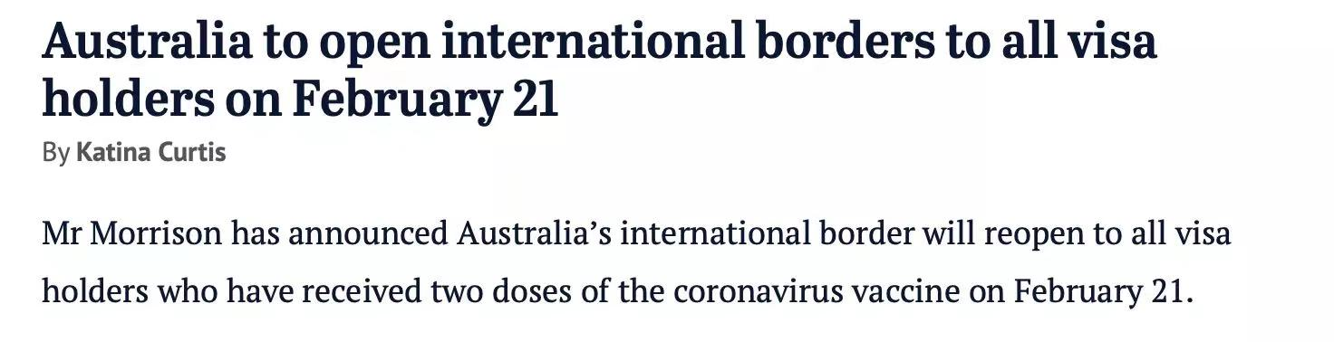如果您是前來澳大利亞的國際旅客,自2022年2月21日開始,所有完全接種疫苗的簽證持有人無需申請入境豁免即可進入澳大利亞。未接種疫苗的申請人依然需要在入境澳大利亞前持有有效的豁免許可訪客入境澳洲。