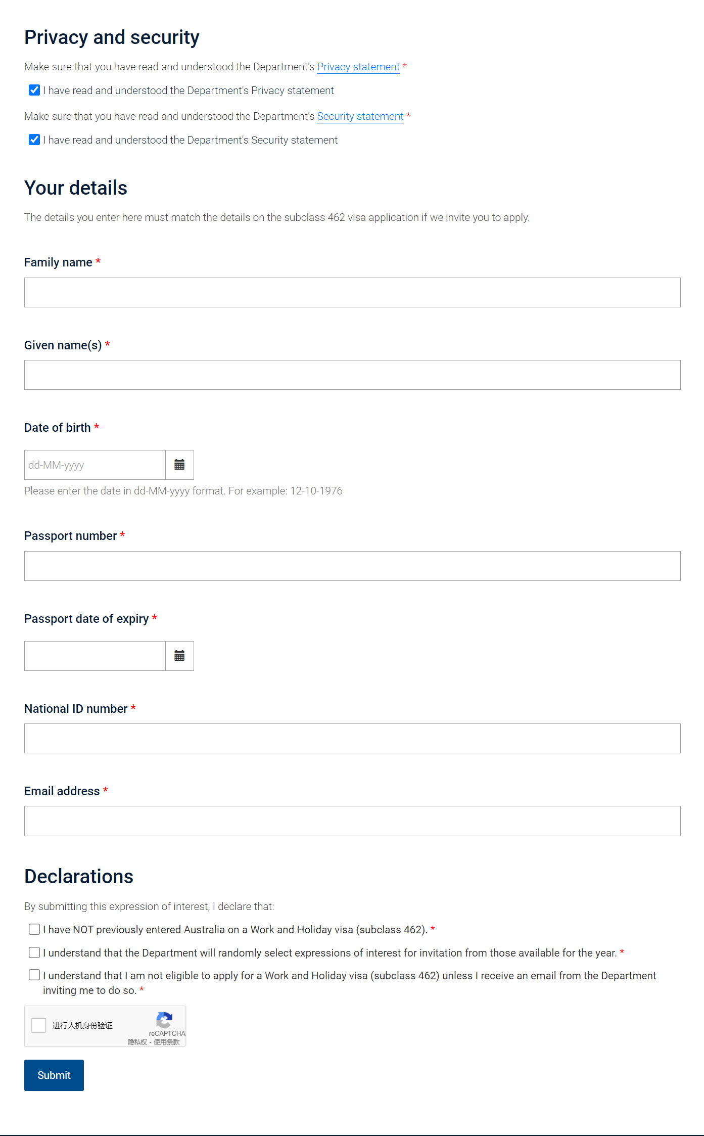 如果你的意向書被選中,內政部將向你發出邀請,請你在線申請首次工作和度假(462類)簽證。你只有在收到邀請函后才能申請你的第一個工作和度假(462類)簽證,而且你必須在網上申請。紙質申請將不再被使用。