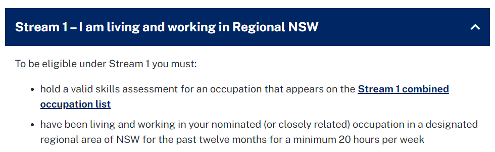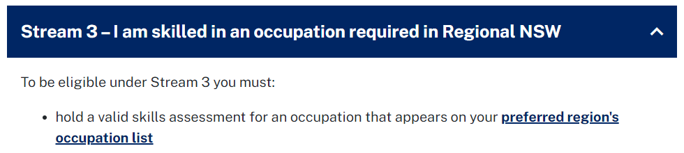 Stream1職業(yè)列表:https://www.nsw.gov.au/topics/visas-and-migration/skilled-visas/nsw-skilled-occupation-lists