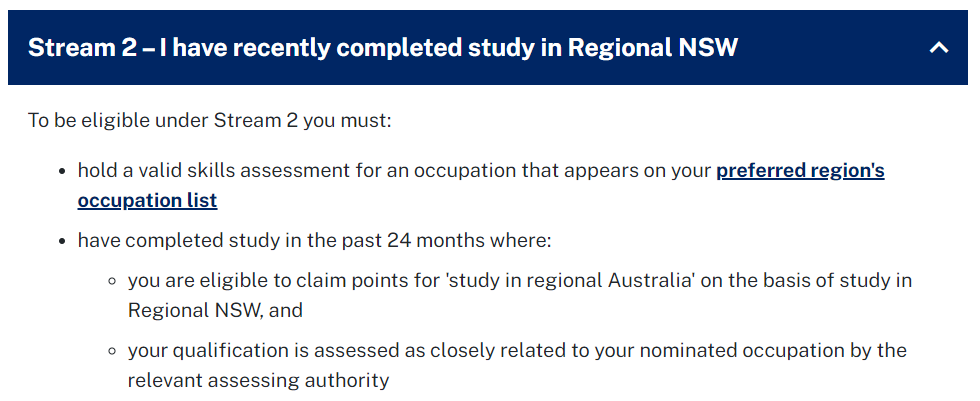 Stream 2 and 3 列表:https://www.nsw.gov.au/topics/visas-and-migration/skilled-visas/nsw-skilled-occupation-lists