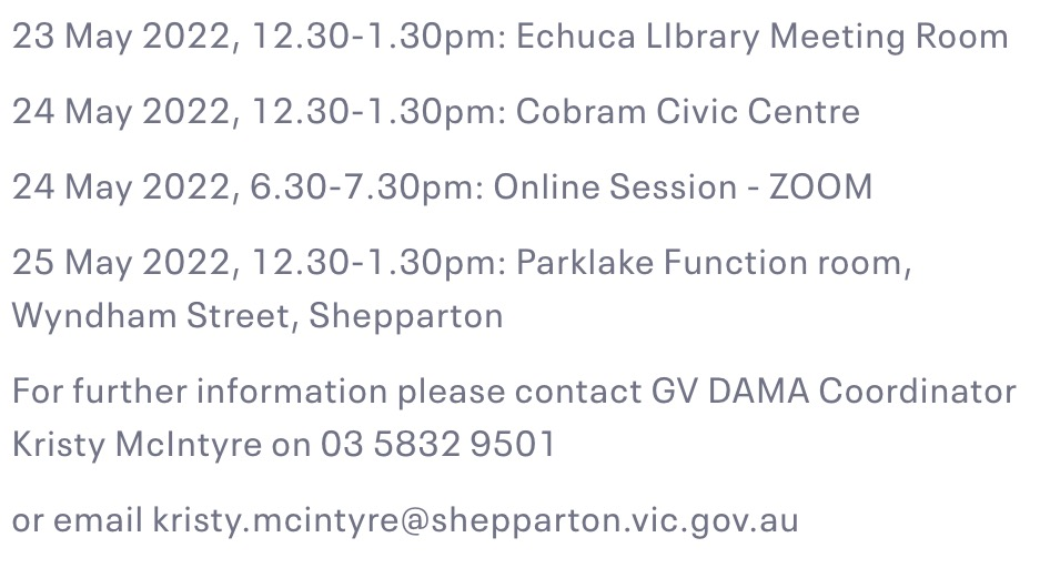 2022年5月23日下午12:30-1:30:Echuca圖書(shū)館會(huì)議室