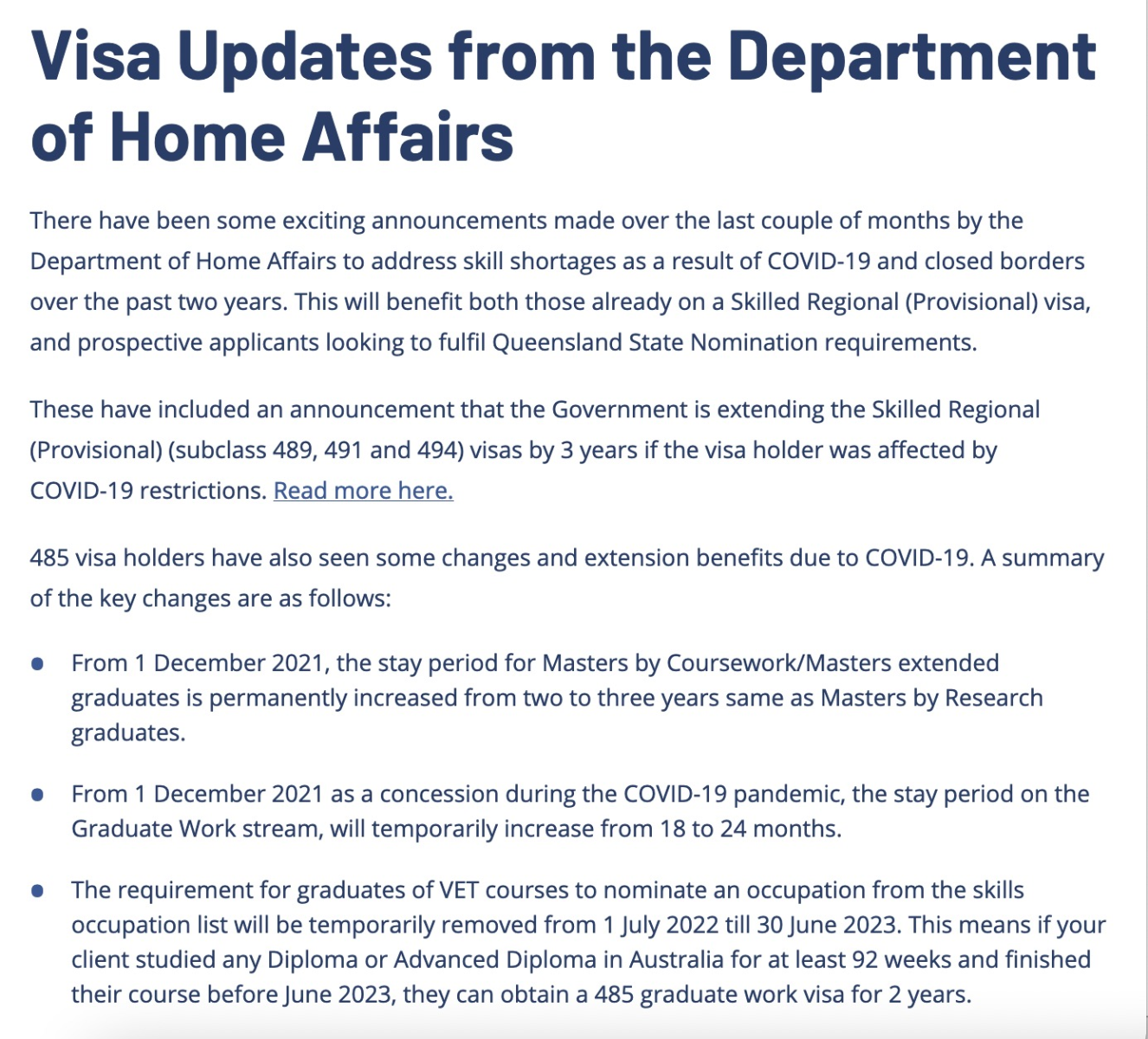 雖然目前在媒體報道中還沒有具體宣布,相關立法也尚未確立修改,但是從2022年7月1日起,申請485Graduate Work Stream簽證(又稱“老485簽證”)的人將不再需要對其職業進行臨時技能評估。
