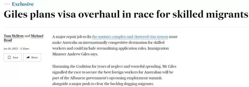 同時,他還提出了兩個要求:一,要求移民局官員提供70多個不同簽證類別的現狀的數據,以及澳洲如何更好地與美國、英國、加拿大、新西蘭等國家競爭人才。二是通過咨詢工會對澳洲技術移民的意見,傾聽工人本身,提供一個更完善的簽證制度。