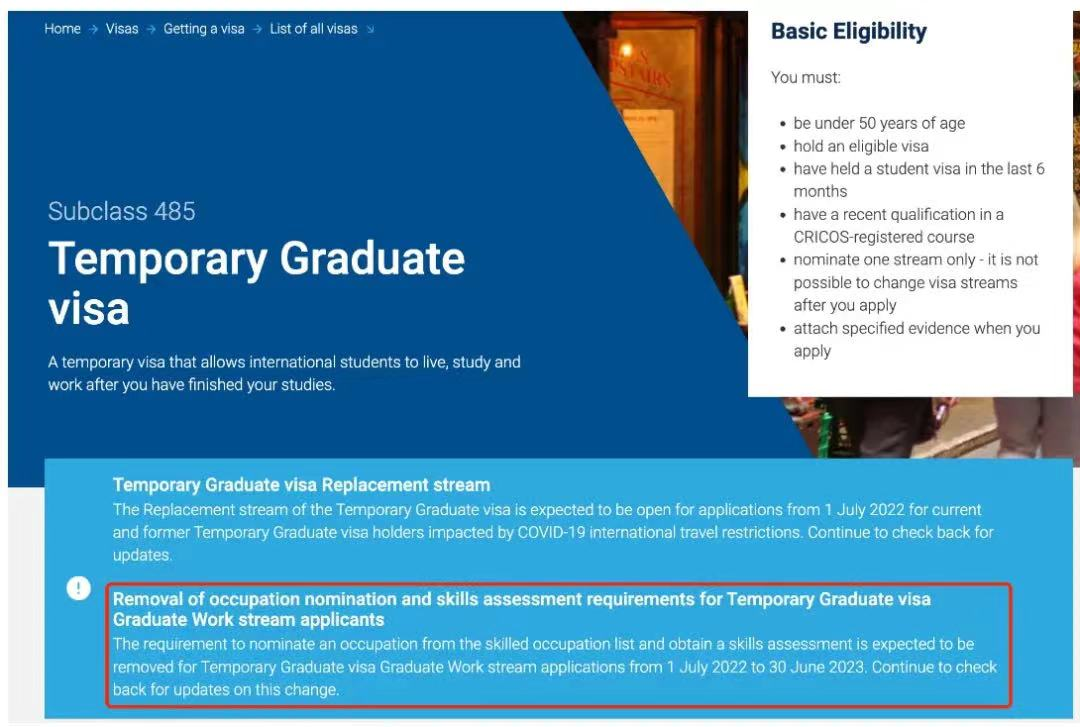 上周五6月24日,澳洲移民局官網更新了關于485簽證的最新消息。