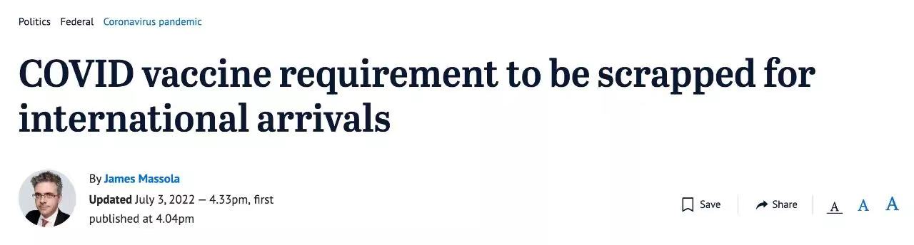 澳洲重磅宣布,自2022年7月6日星期三上午12點起,將取消一項重大的入境管控措施——入境澳洲的國際旅客將不再需要申報自己的新冠疫苗接種狀態(tài)。