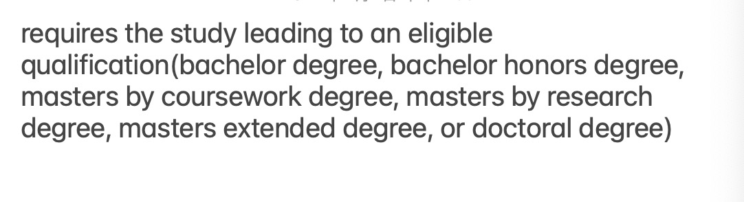即,要求獲得合格資格(學士學位、學士榮譽學位、課程碩士學位、研究碩士學位、延伸碩士學位或博士學位)
