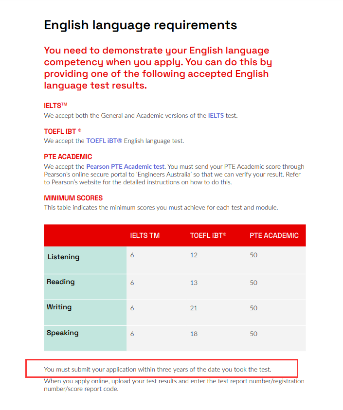 澳大利亞工程師協會EA(Engineers Australia)是澳洲移民局指定的工程類專業的評估機構。其中對英語的要求為:
