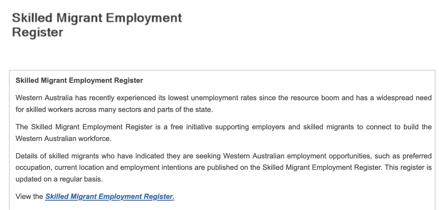 近日,西澳政府在官網(wǎng)正式推出了技術(shù)移民就業(yè)登記冊(cè)(Skilled Migrant Employment Register)。
