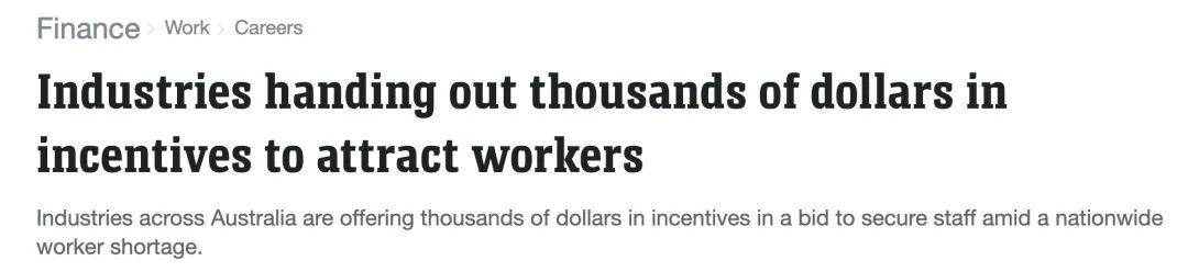 隨著澳大利亞工作人員短缺的問題持續困擾著各行各業,一些高需求行業紛紛采取激勵措施以吸引新員工,包括貿易零售業、服務業、醫療保健業、制造、運輸和物流業等。簽約就職的新員工將會得到數千至上萬澳元不等的現金獎金,最高可獲得1.5萬澳幣。
