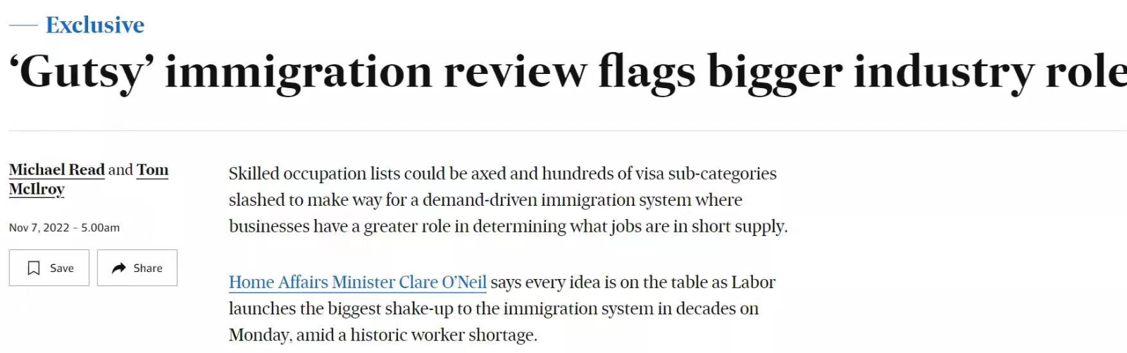內政部部長O’Neil表示“簽證系統需要徹底改革”。目前,在如何設計簽證系統、如何思考這一關鍵任務方面,沒有足夠的戰略。隨著全球人才的爭奪,澳洲迫切需要對規則和流程進行徹底改革,只有在優化簽證處理系統后才能吸引更多海外優秀人才移民澳洲。