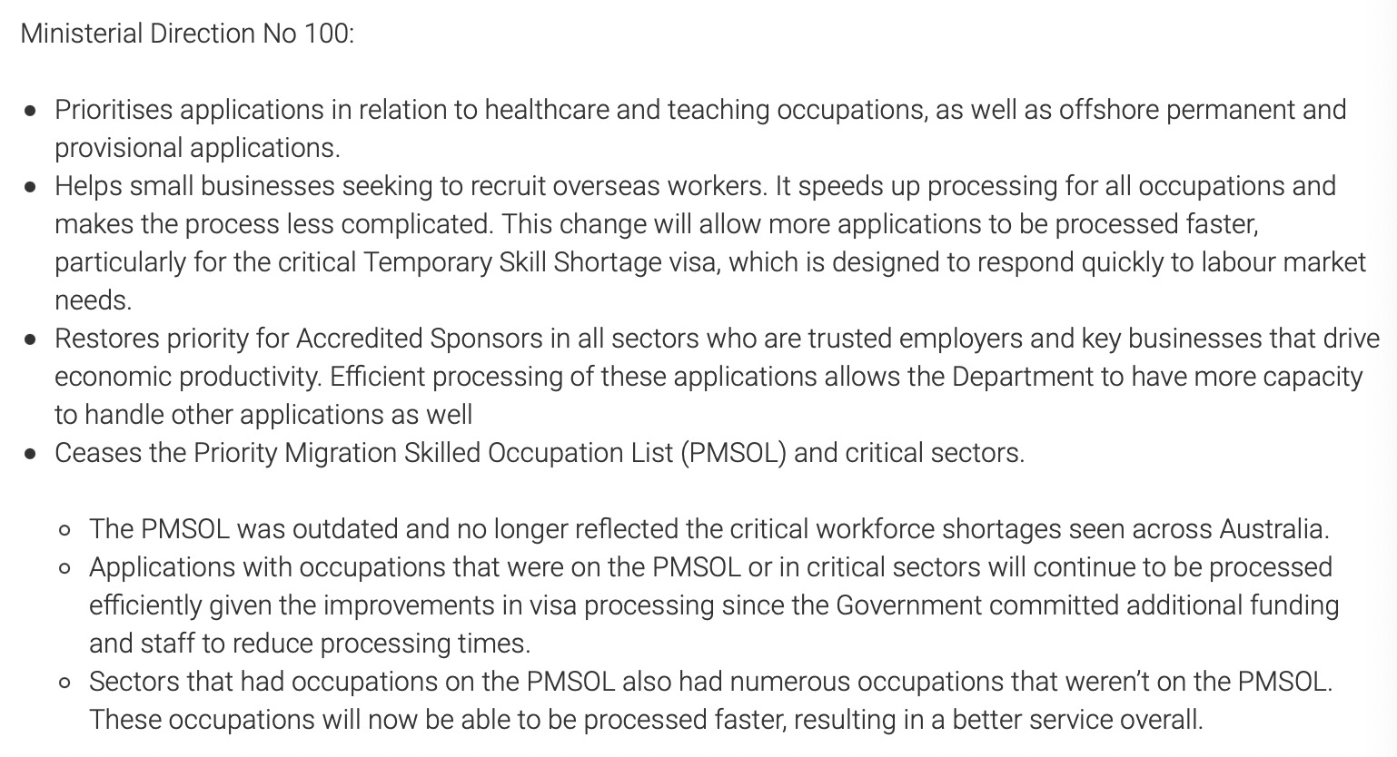 --由于政府承諾提供更多資金和人員來減少簽證處理時間,簽證處理工作得到了改善,因此PMSOL上的職業或關鍵部門的申請將繼續得到有效處理。