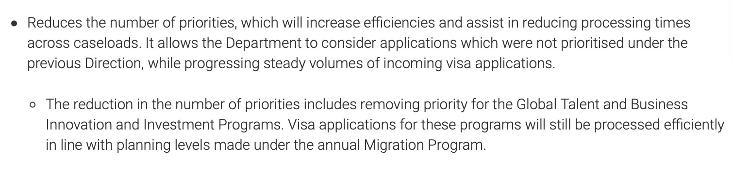 --撤銷全球人才(Global Talent)和商業創新與投資項目(Business Innovation and Investment Programs)的優先處理權。這些項目的簽證申請仍將按照年度移民計劃的規劃進行處理。
