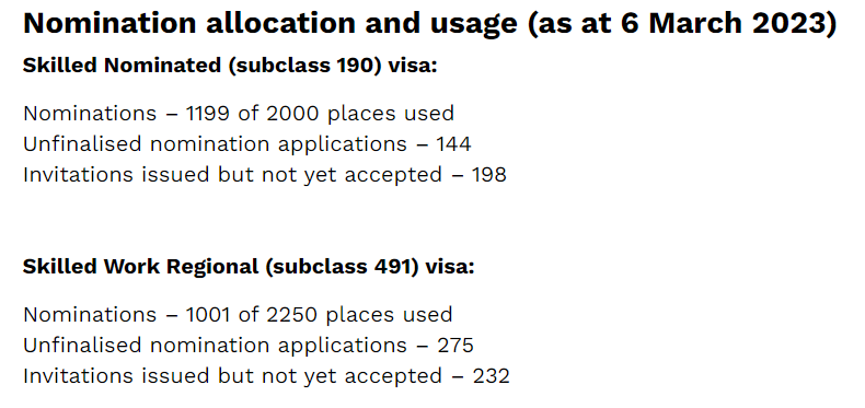 同時(shí),塔州官網(wǎng)也更新了截止至3月6日,190/491的最新配額使用情況。
