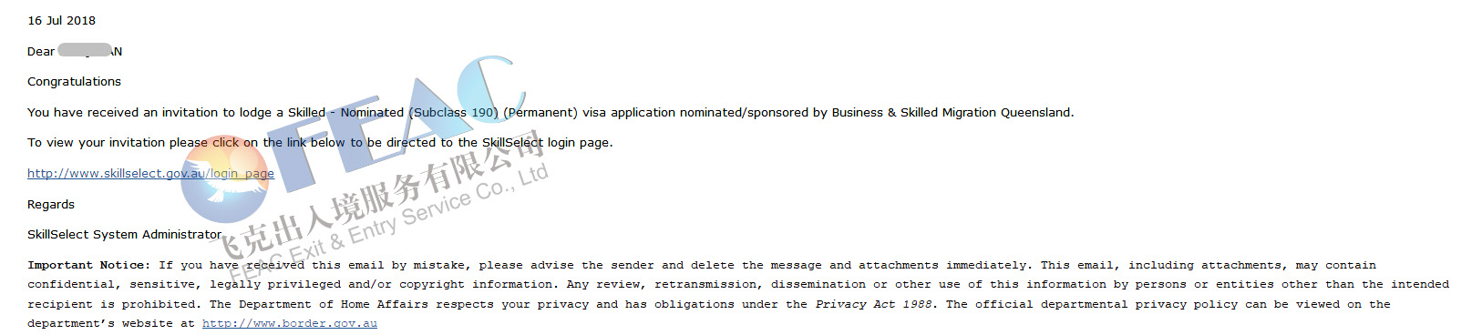 2018年7月2日遞交昆州190 EOI,7月7日收到郵件邀請,7月11日遞交昆州190擔保材料,7月16日獲得昆州190擔保并EOI獲邀(移民分65分:基礎分60分+州擔保5分)!